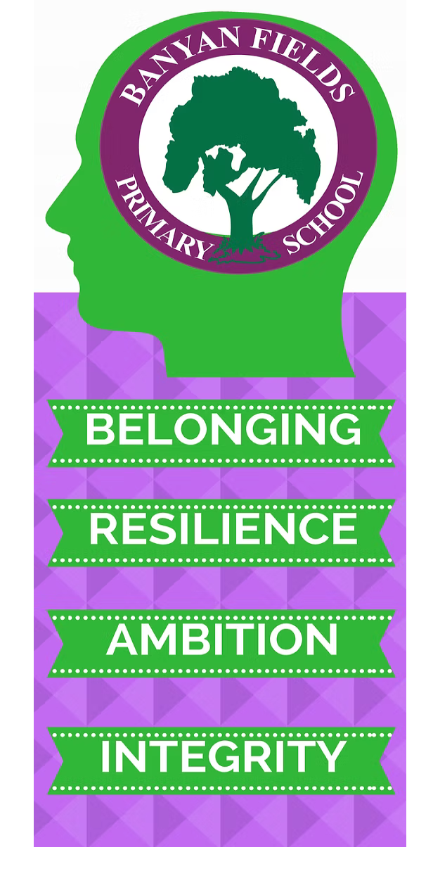 Banyan Fields Primary School’s objective is to instil the values of belonging, resilience, ambition and integrity to create influential and positive members of society.